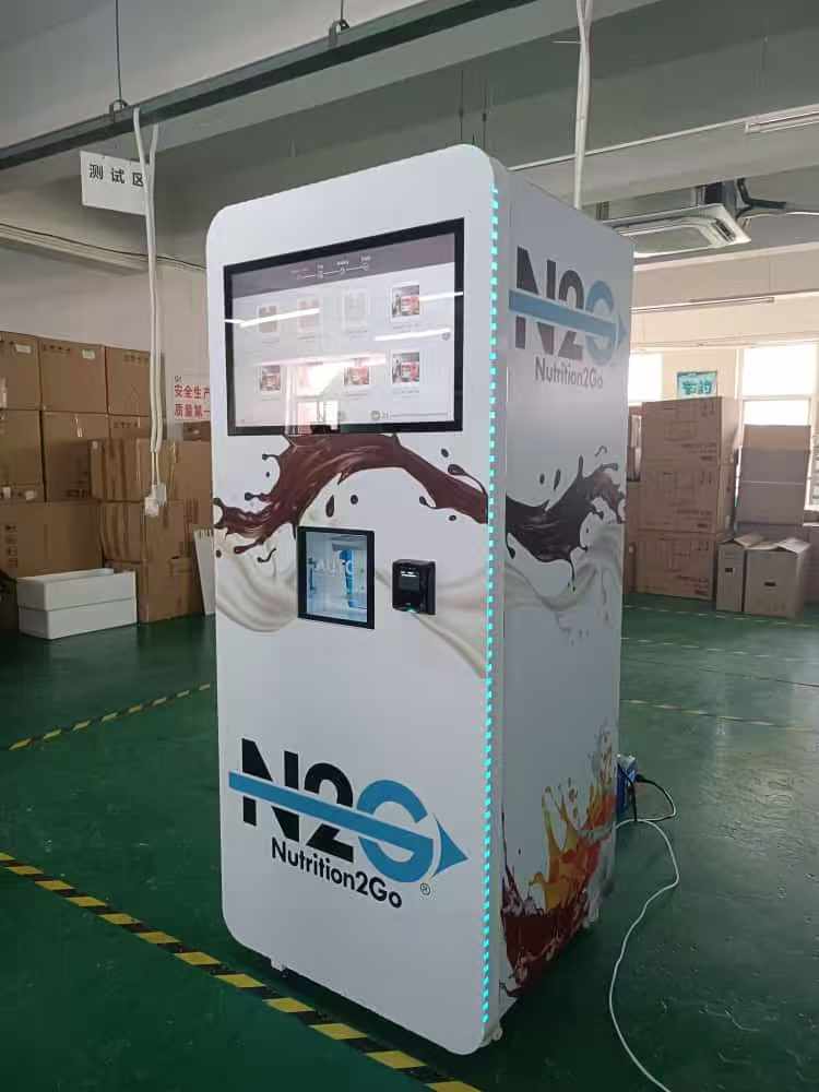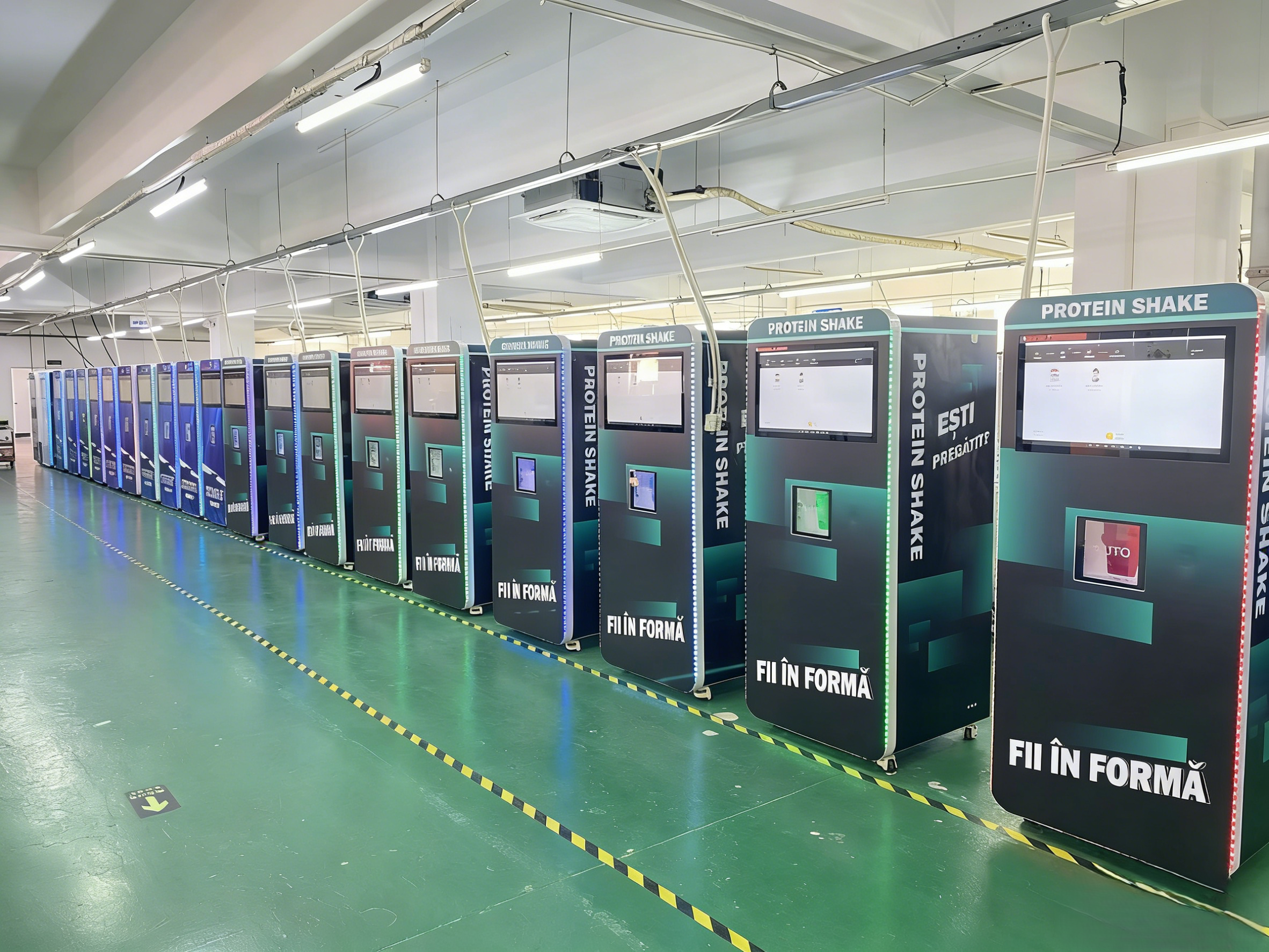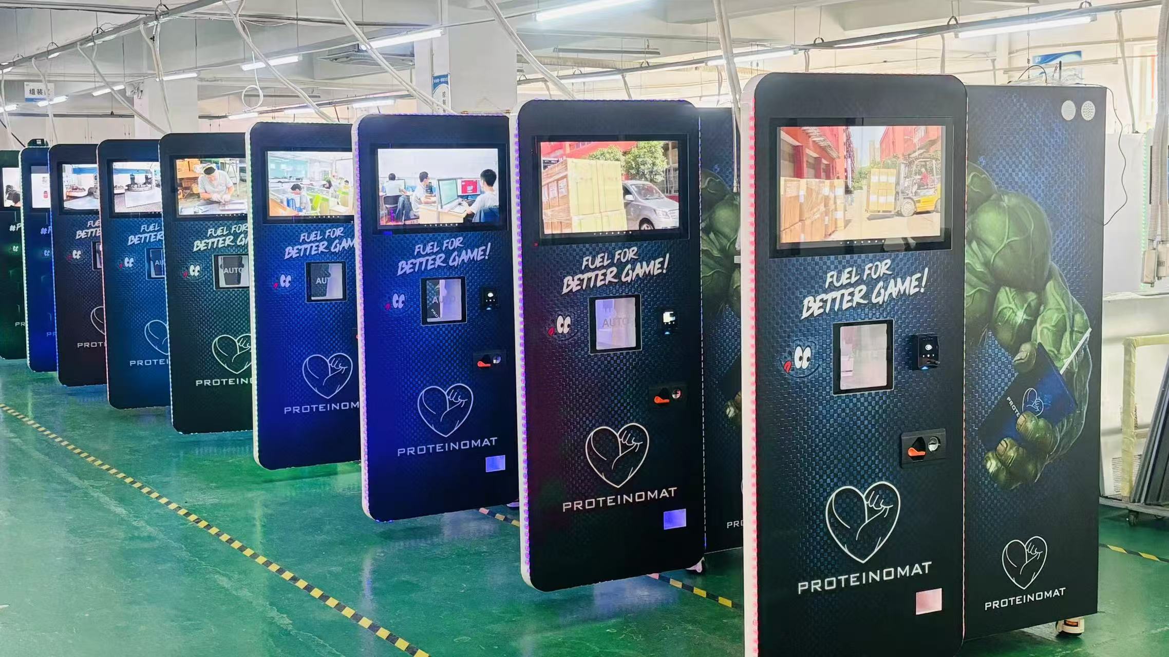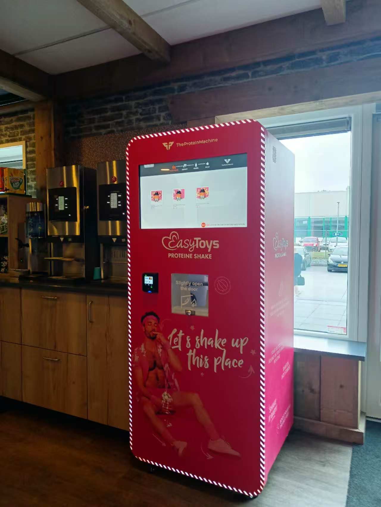 Der GS805 Protein-Automat kombiniert maximale Auswahl mit minimalem Aufwand. Über das 27″ Touch-Display wählen Kunden aus über 20 Rezepturen, während das System auf nur 0,5 m² Fläche vollautomatisch mixt, reinigt und abrechnet. Dank Cloud-Anbindung steuern Sie Ihr Business digital und ortsunabhängig.